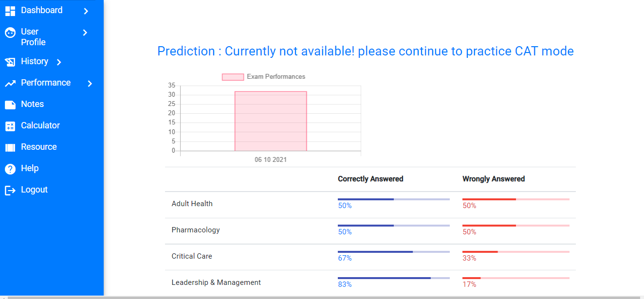 Topic wise test will help you gain thorough knowldege based on individual topic and compterized Adaptive test is exactly same sa real NCLEX-RN® Exam. AI will predict when you are ready to take exam under performance tab.